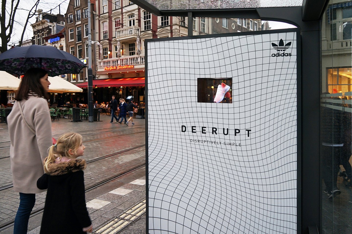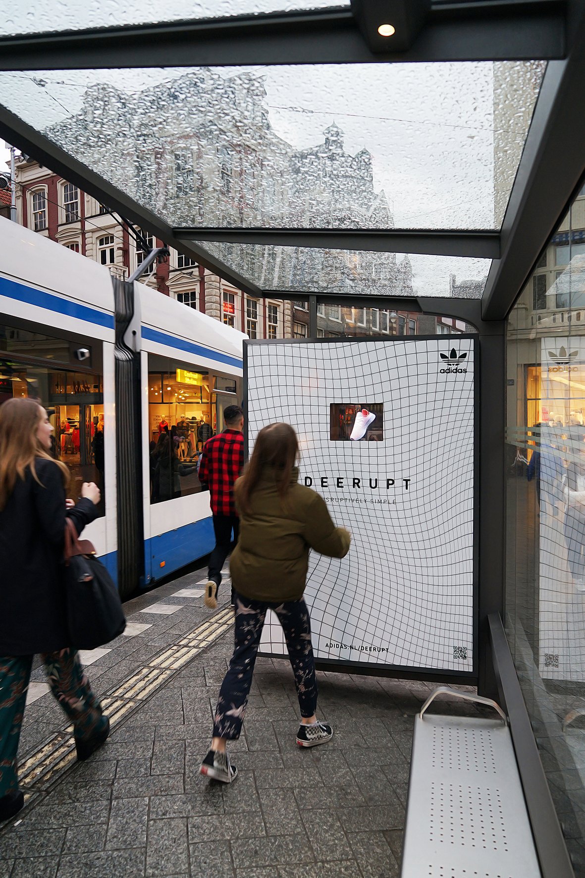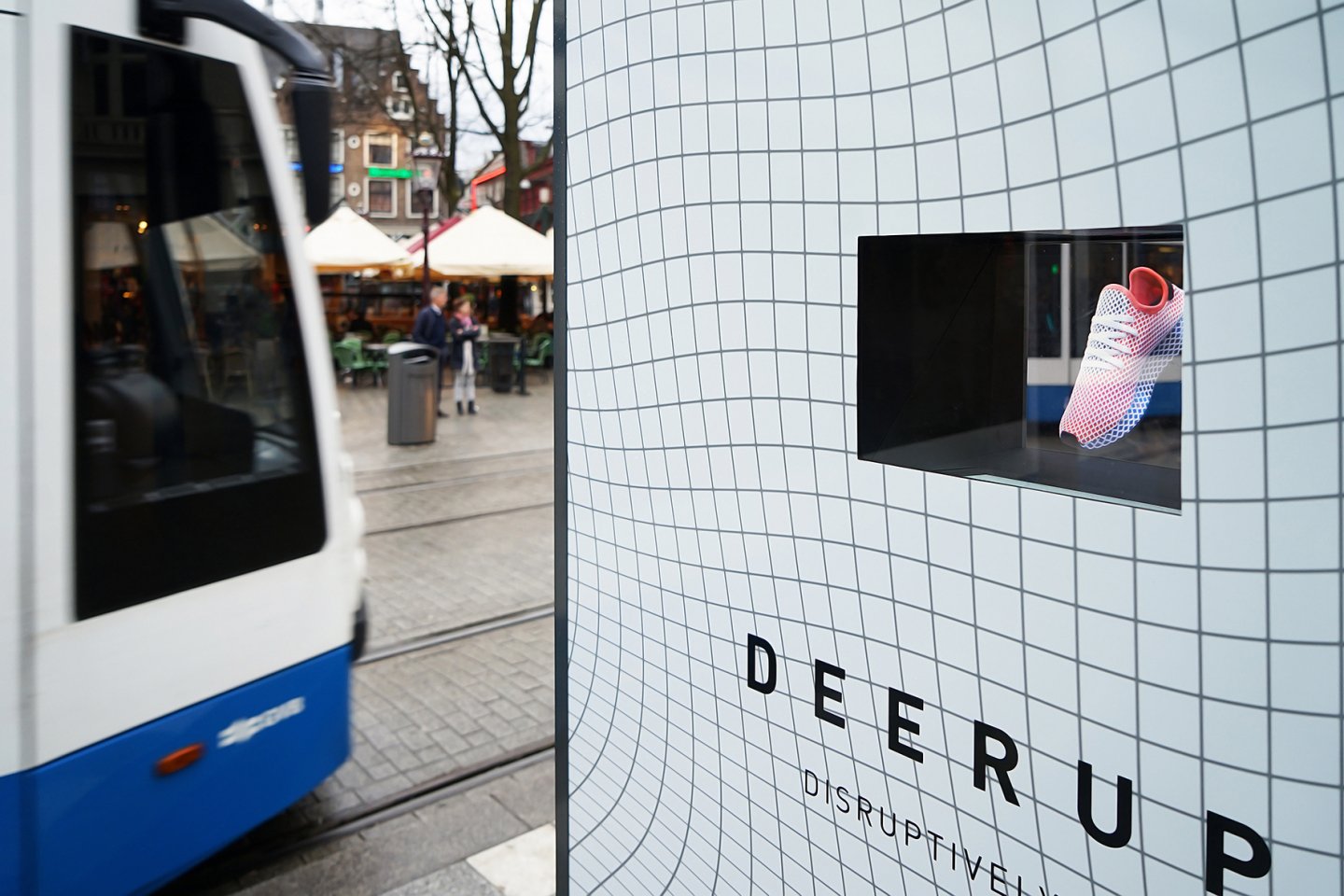Een uitzonderlijk staaltje Buitenreclame: Adidas toont zijn nieuwste sneaker met een indrukwekkende 3D-projectie in een Abri van JCDecaux.