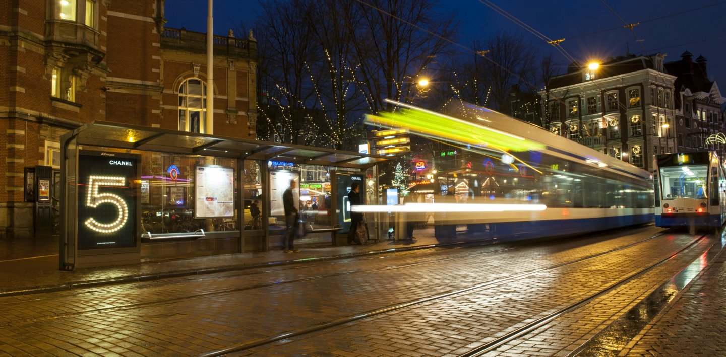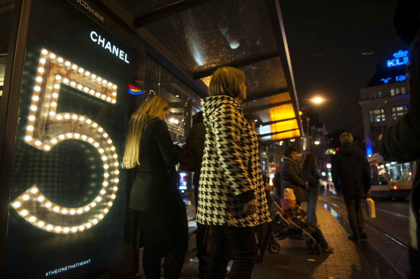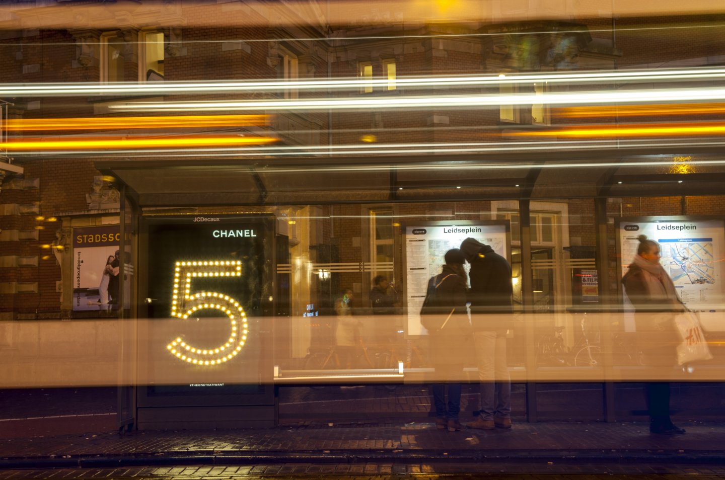 Chanel N˚5, de éminence grise onder de parfums, draagt in deze donkere dagen op een stijlvolle manier bij aan de Amsterdamse kerstverlichting. Een 3D-vorm van de wereldberoemde N°5 straalt in de objecten van JCDecaux.