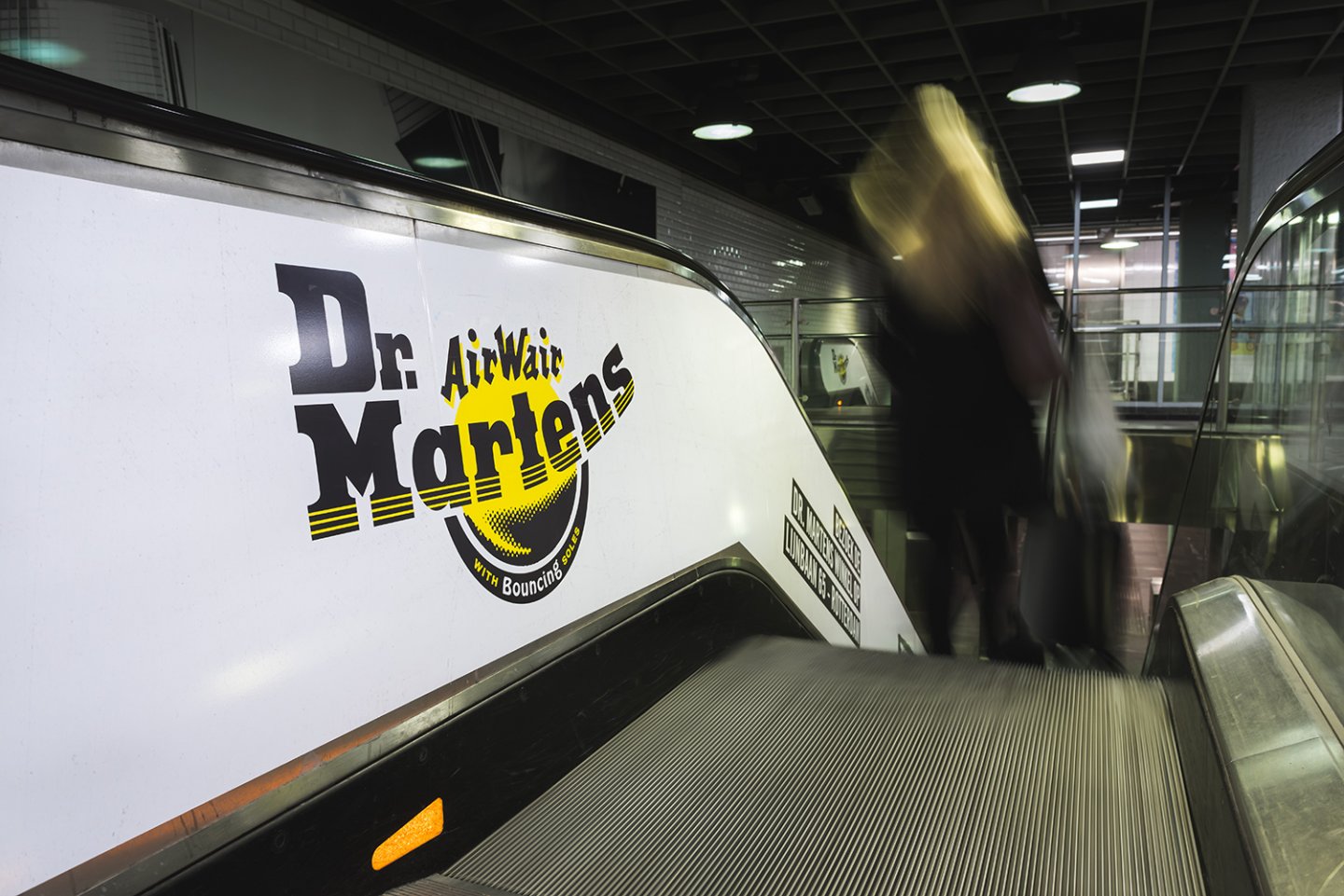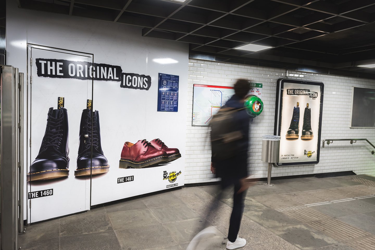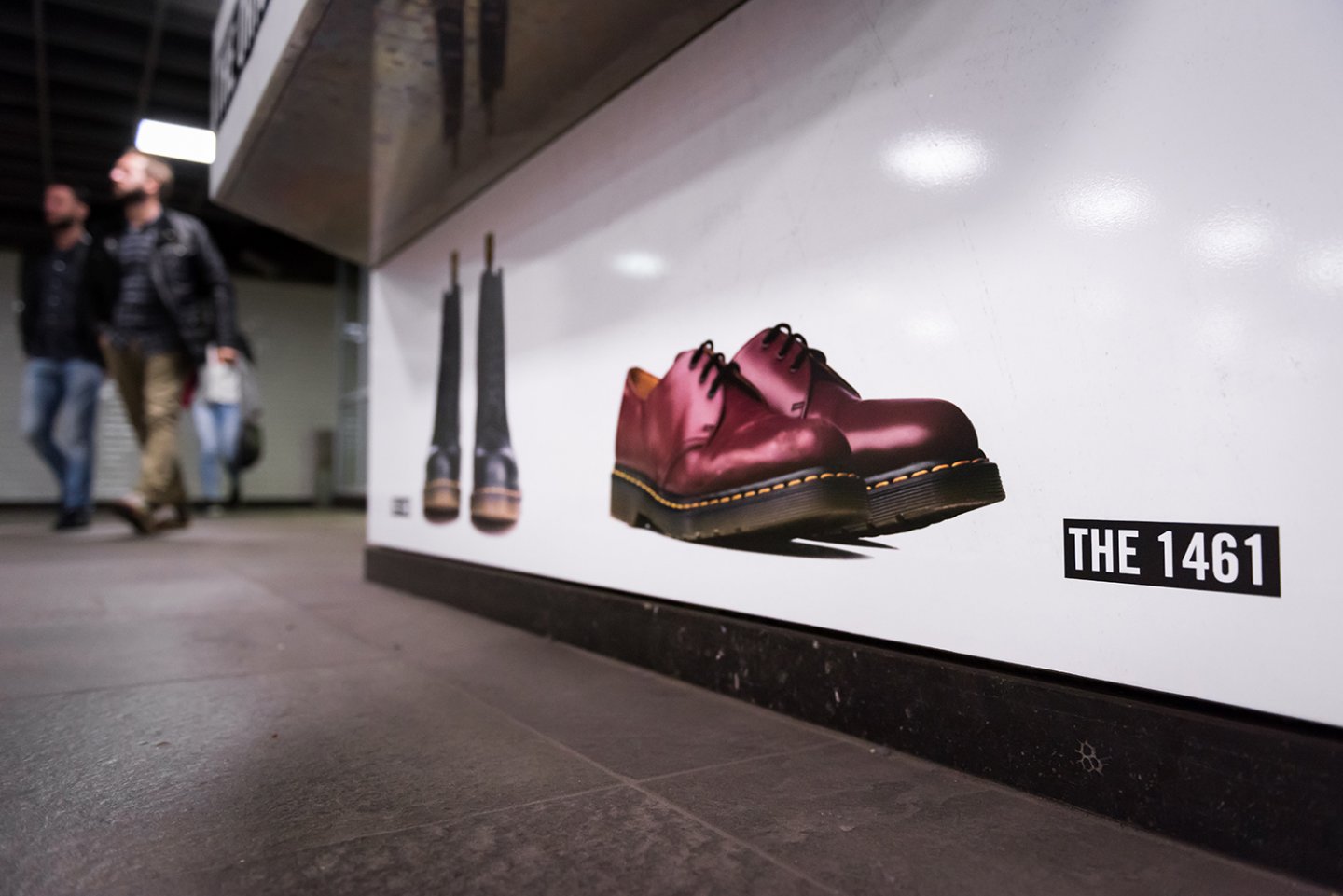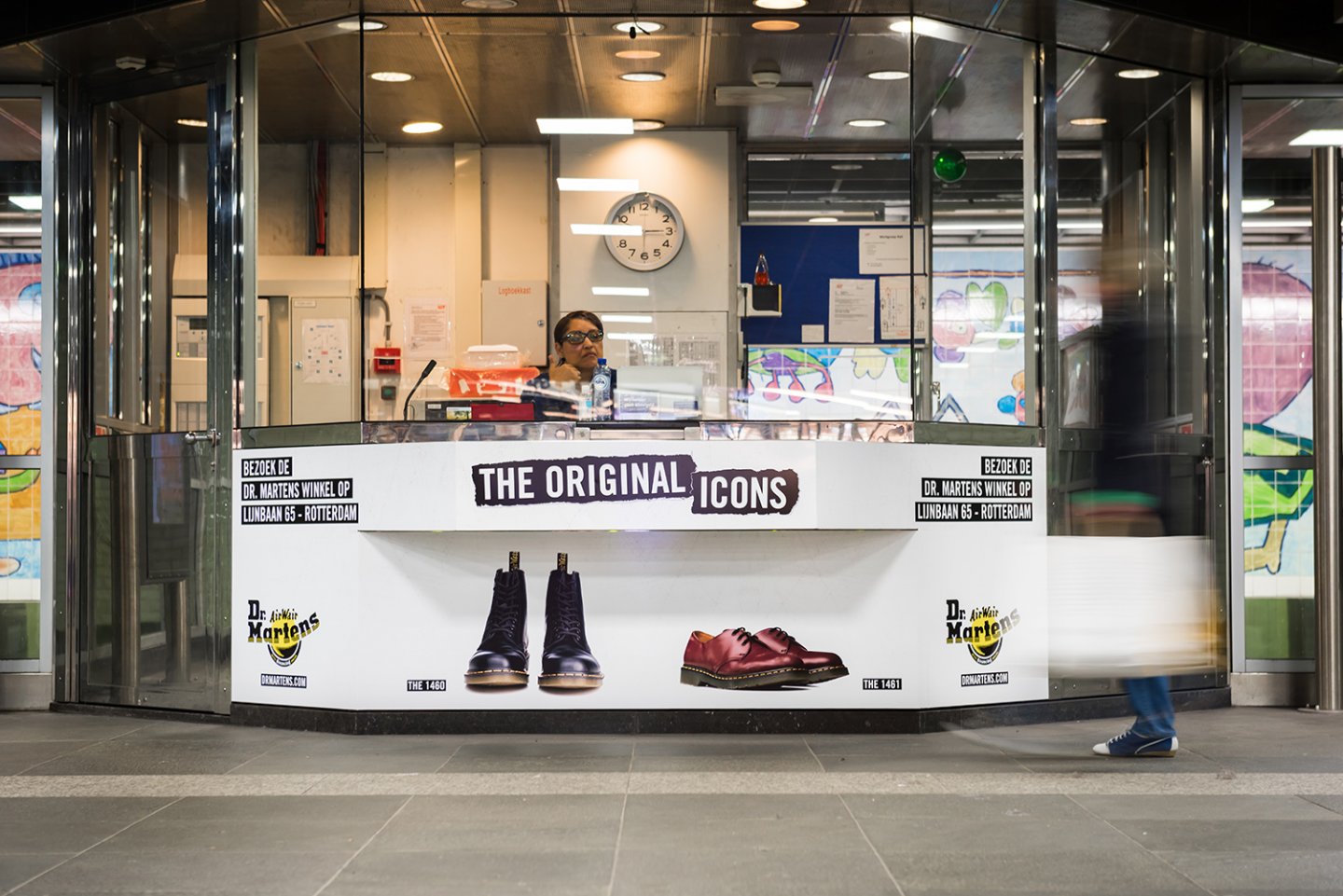 Met een onontkoombare stationsbranding bij JCDecaux begeleidt Dr. Martens de Rotterdamse ov-reiziger naar het perron van station Beurs. En naar de shop op de Lijnbaan!