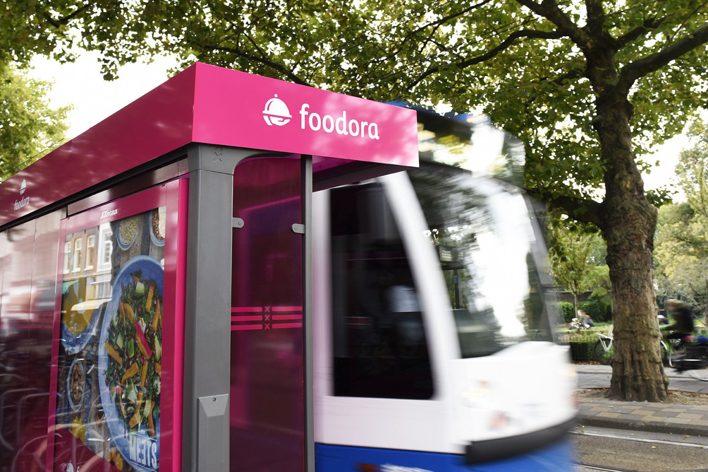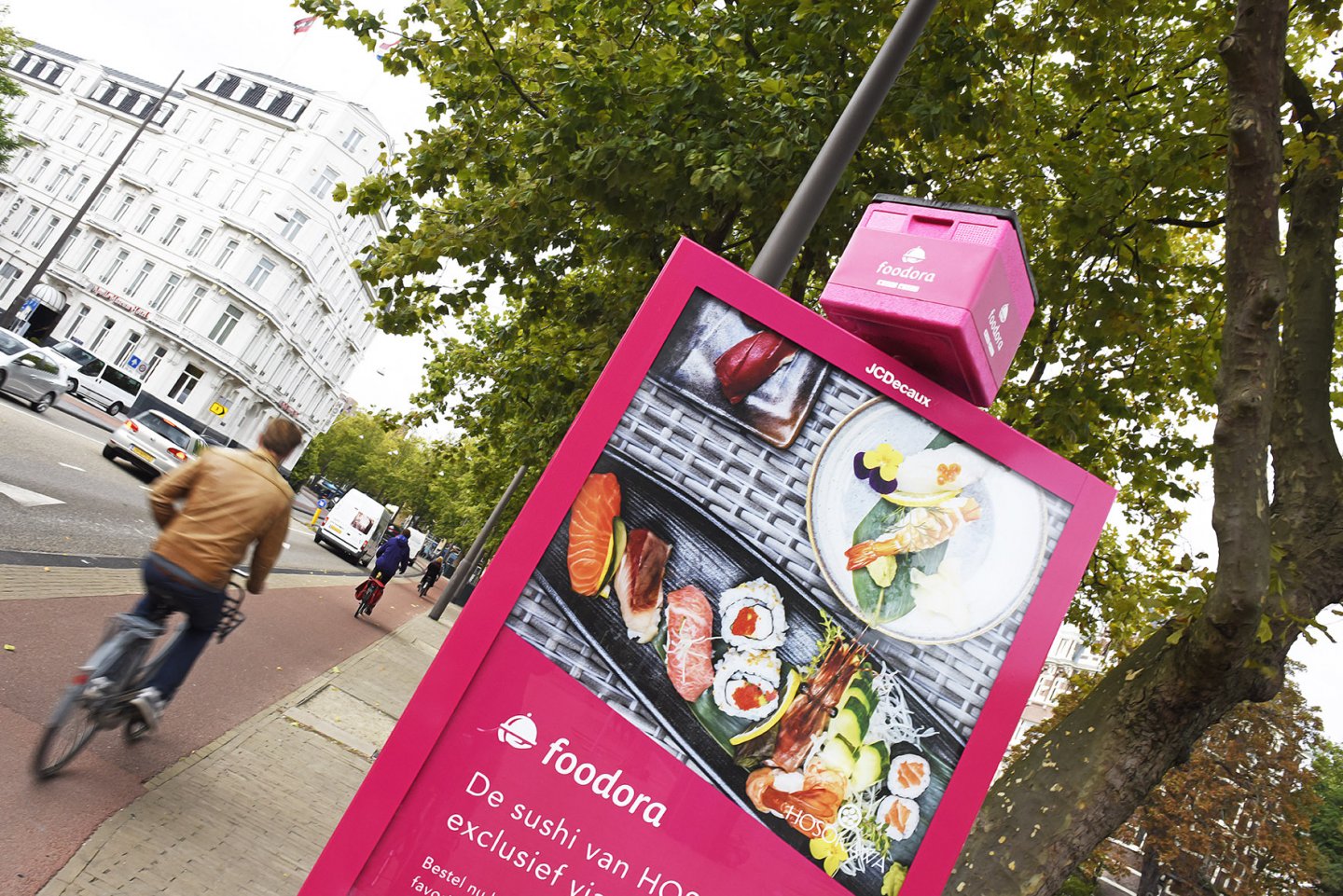 Met opvallende bestickeringen en bezorgboxen op Mupi's van JCDecaux nodigt Foodora uit de culinaire trek te stillen.