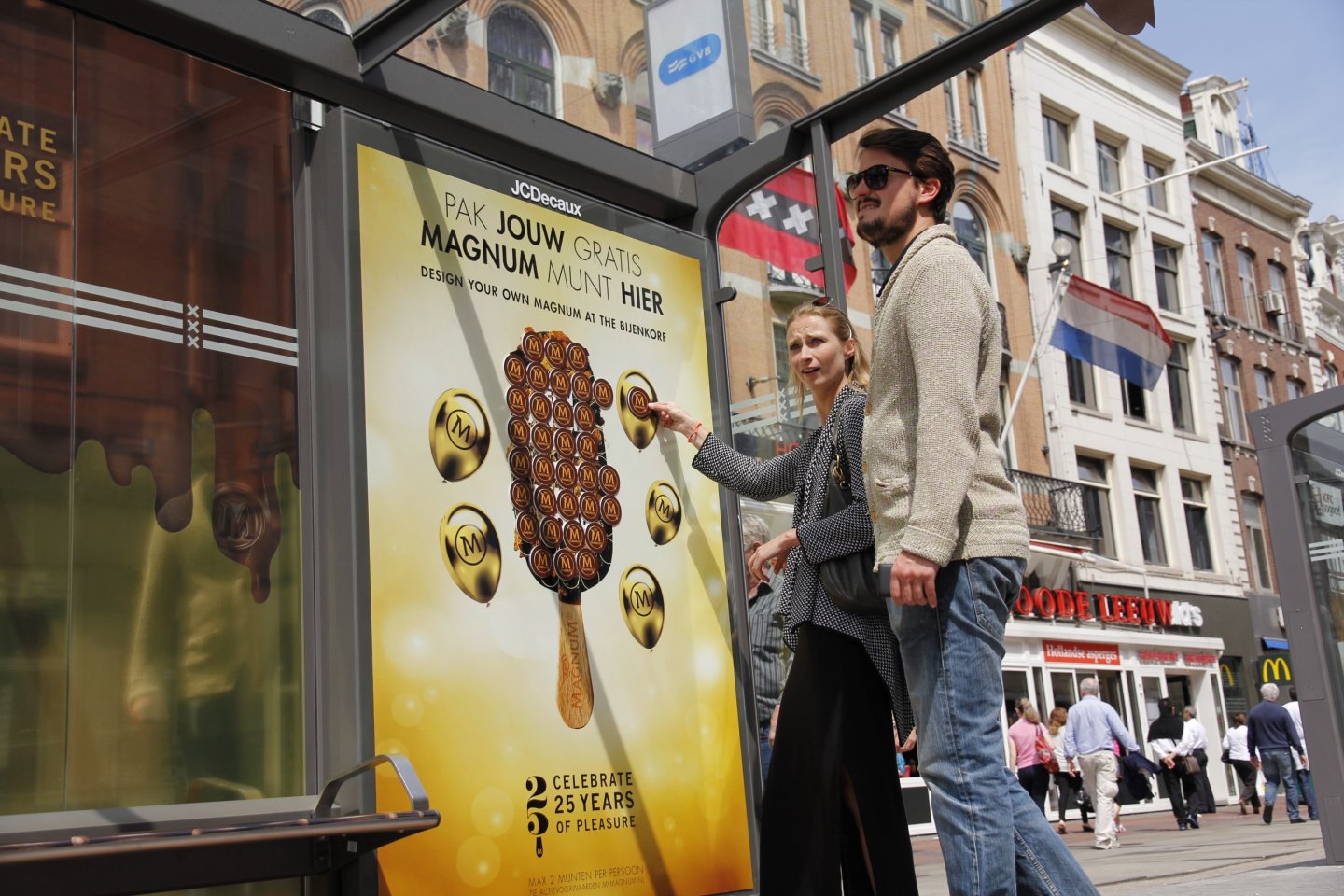 Het ijsmerk Magnum bestond 25 jaar en vierde dat in Nederland door gratis ijs uit te delen in een Abri van JCDecaux.