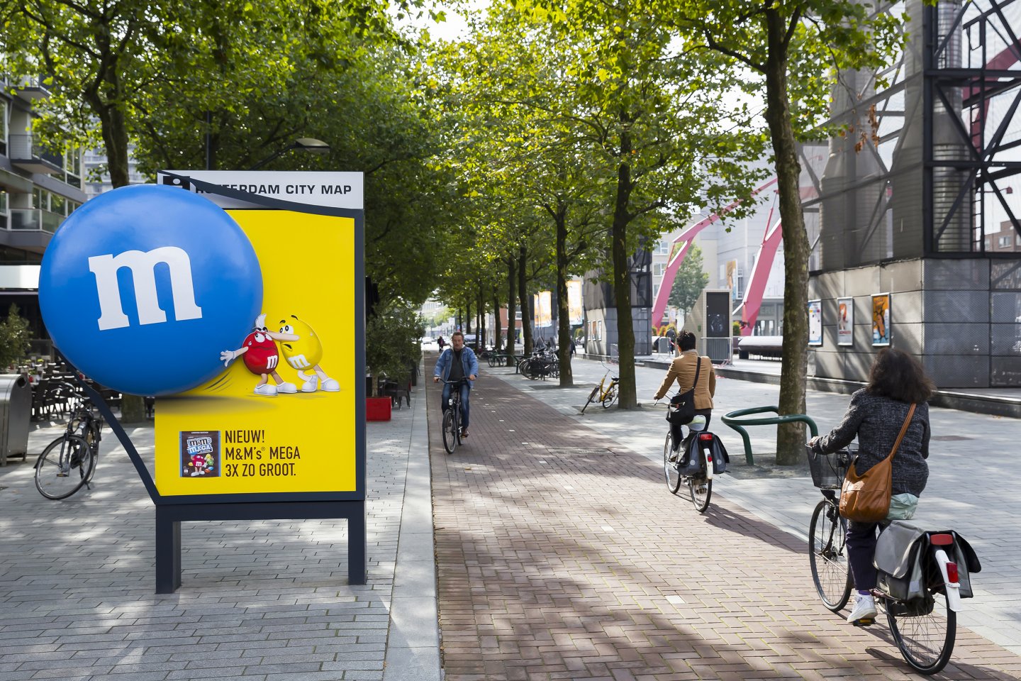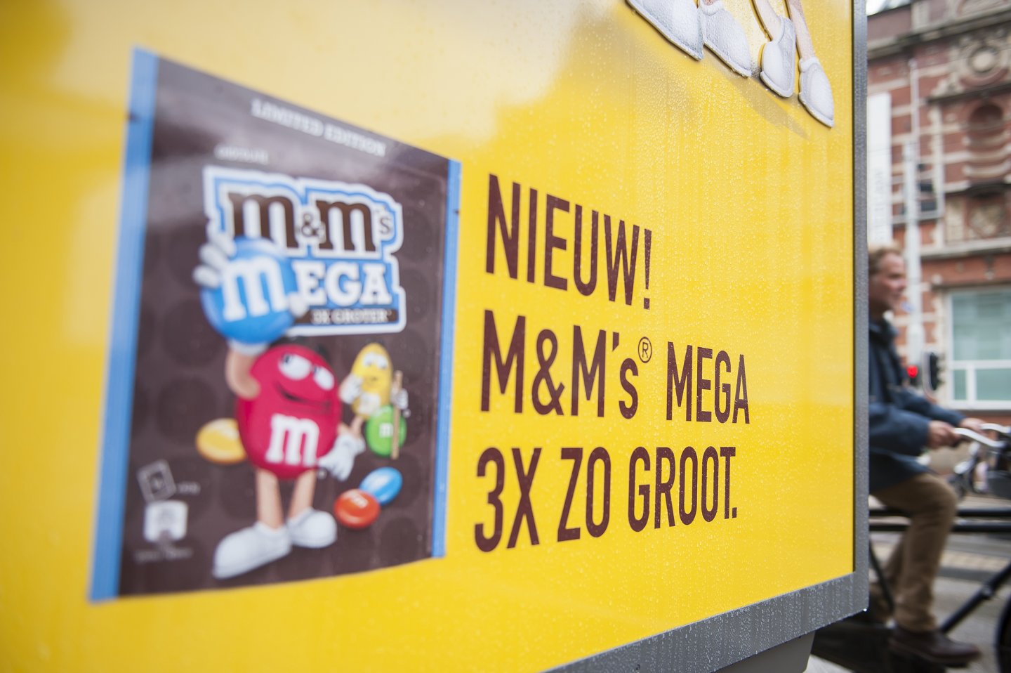 M&M’s introduceert: M&M’s Mega. Deze zijn maar liefst drie keer zo groot als normaal. Om dit te promoten, probeerde M&M’s ze in Mupi’s van JCDecaux te stoppen. Tevergeefs…