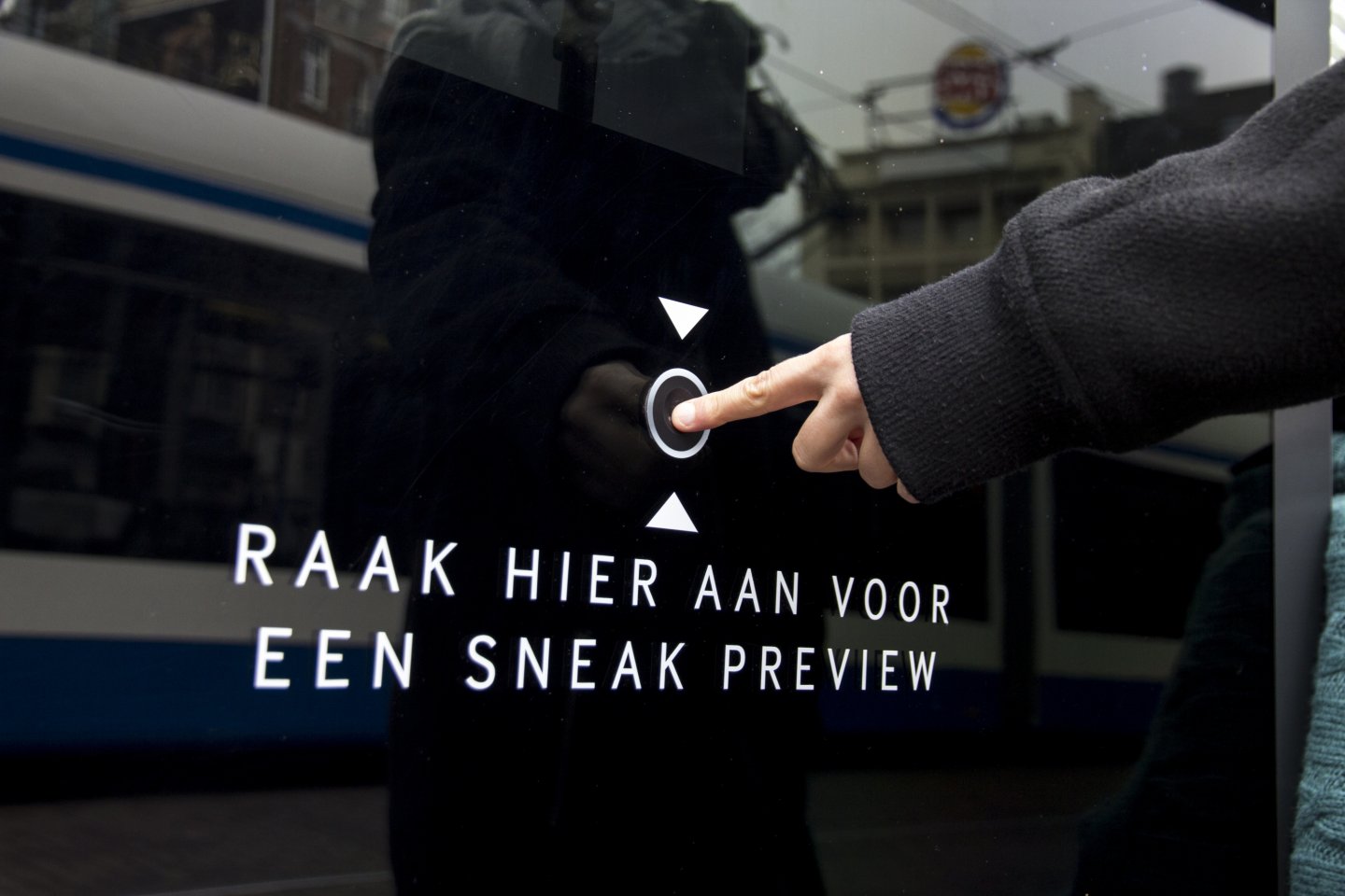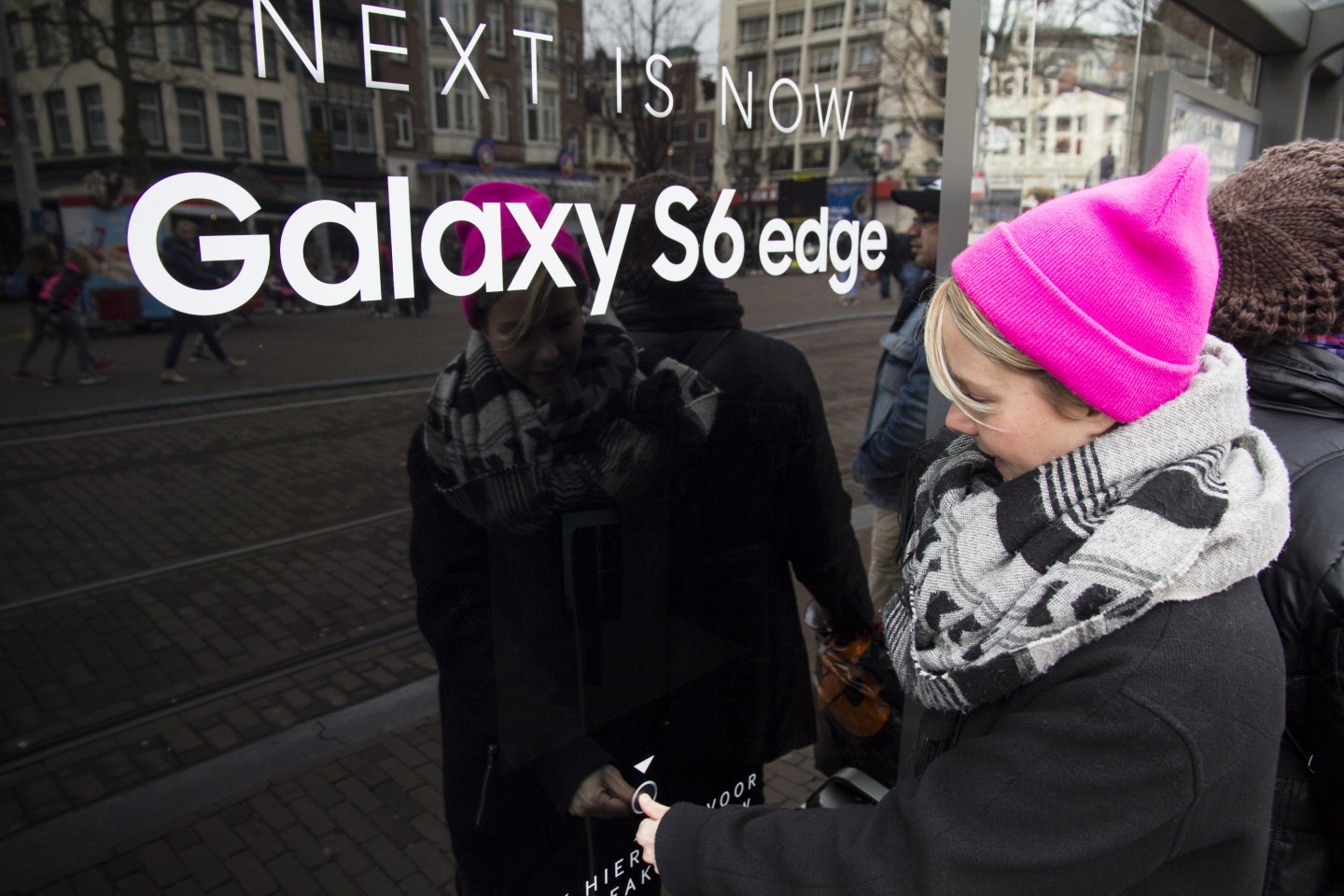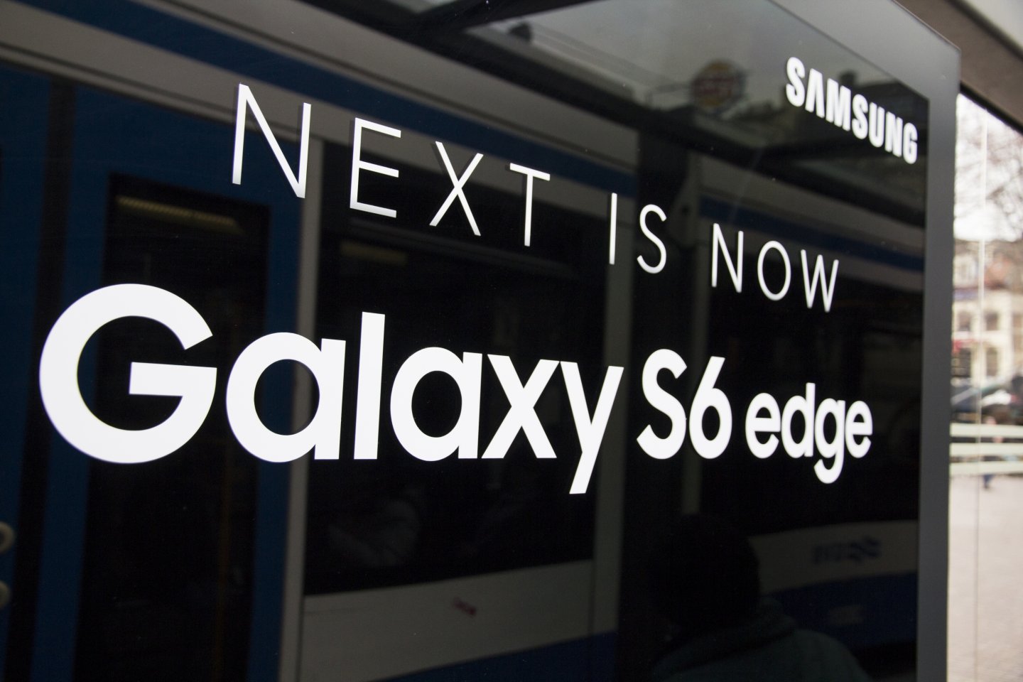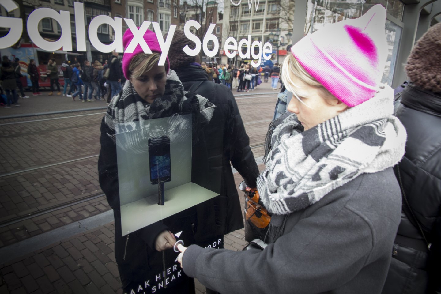 Met een druk op de knop konden voorbijgangers in objecten van JCDecaux alvast een glimp opvangen van de nieuwe Samsung Galaxy S6 edge.
