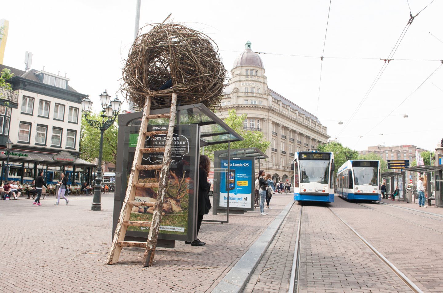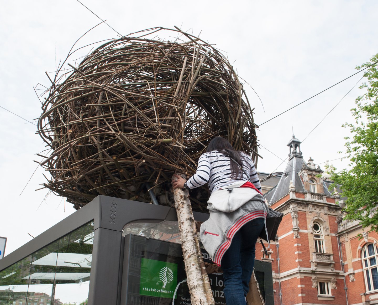 Staatsbosbeheer plaatst een reusachtig groot nest op een Abri van JCDecaux.