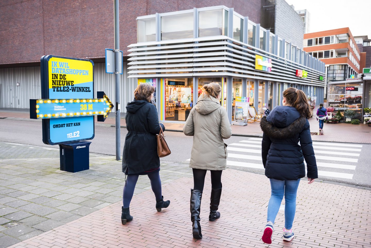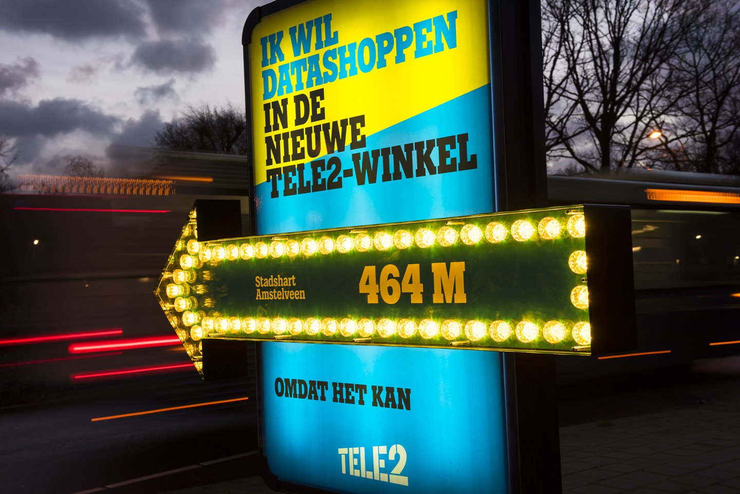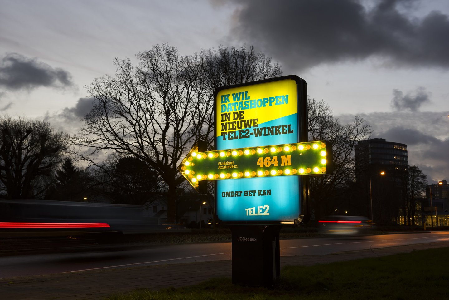 Waar is die nieuwe Tele2-winkel? Dáár is die nieuwe Tele2-winkel! Met een opvallende verwijscampagne bij JCDecaux introduceert Tele2 een nieuwe vestiging in Amstelveen.