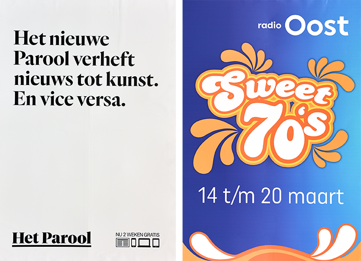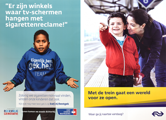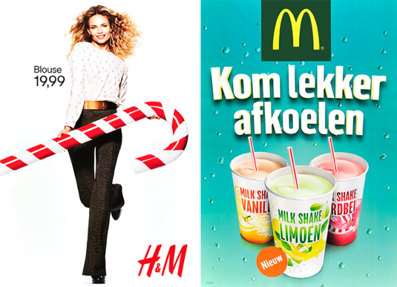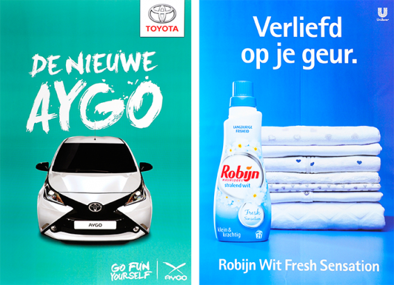Hoe vaak zie je een leuke reclame, maar kun je je de adverteerder later niet herinneren? Juist. Voor het slagen van jouw campagne is een correcte product- en merkkoppeling essentieel. Sterke branding speelt een belangrijke rol, maar moet in balans zijn met de boodschap. In de westerse cultuur kijken mensen als eerst op ooghoogte naar een affiche, waarna ze verder scannen van linksboven naar rechtsonder. Packshot en logo worden dan ook vaak boven in het midden geplaatst. Dit wordt ook wel een T-leesrichting genoemd. Ook is herkenbaar kleurgebruik in het packshot, refererend aan het logo, raadzaam.