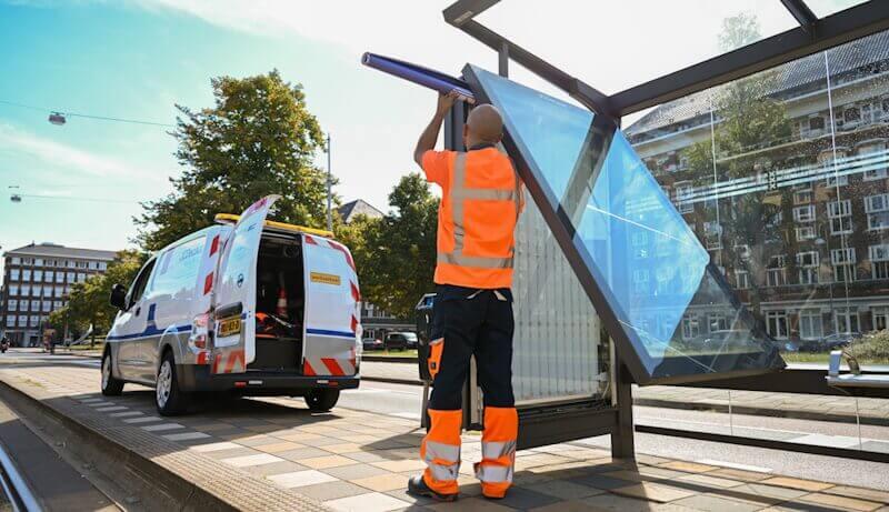 Bij alle werkzaamheden in de gebruiksfase van objecten, zoals affichage, reiniging en onderhoud, wordt gebruikgemaakt van elektrisch vervoer. Ons kantoorpersoneel rijdt eveneens elektrisch, in deelauto’s, of maakt gebruikt van ov of een (elektrische) fiets voor woon-werk reizen. Daarnaast bundelen wij werkzaamheden in de openbare ruimte, en verminderen wij onze vervoerskilometers door route-optimalisatie.